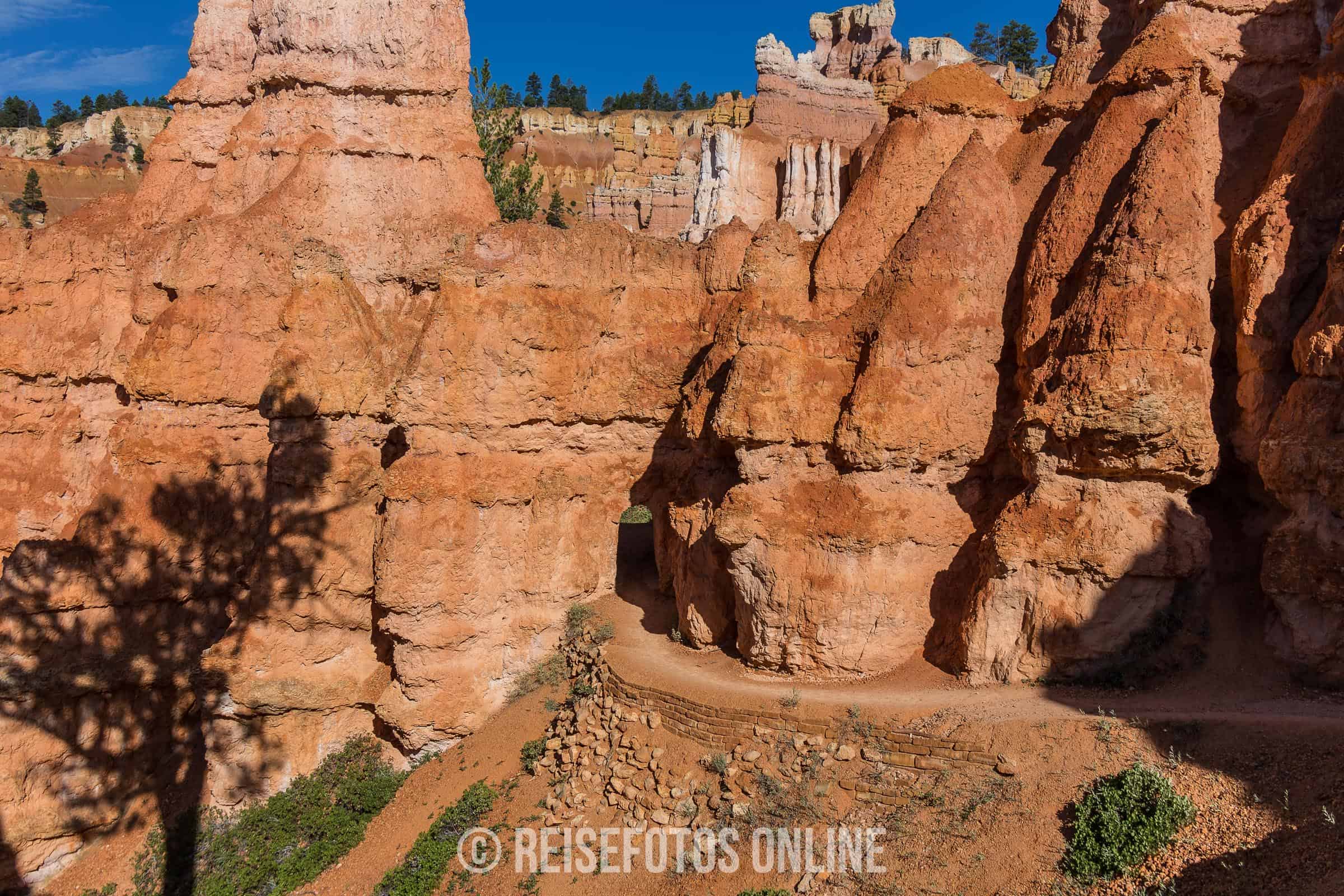 Durch den Park führt eine etwa 29 Meilen (ca. 47 km) lange Scenic Route mit 13 Aussichtspunkten, so daß man den Park ausgezeichnet mit dem Pkw erkunden kann. Allerdings ist das wirklich nur etwas für die ganz eiligen. Man verpasst dann schon einiges. Wir empfehlen Euch mindestens eine kurze Wanderung nach unten zu unternehmen. Der Queens Garden Trail ist nur knapp 1,5 Kilometer lang und eignet sich hervorragend den Canyon von unten zu sehen. Allerdings sind trotz der kurzen Wegstrecke recht anstrengende Steigungen enthalten. Nehmt genügend Wasser mit, denn im Sommer wird es sehr heiß – unterschätzt das nicht.