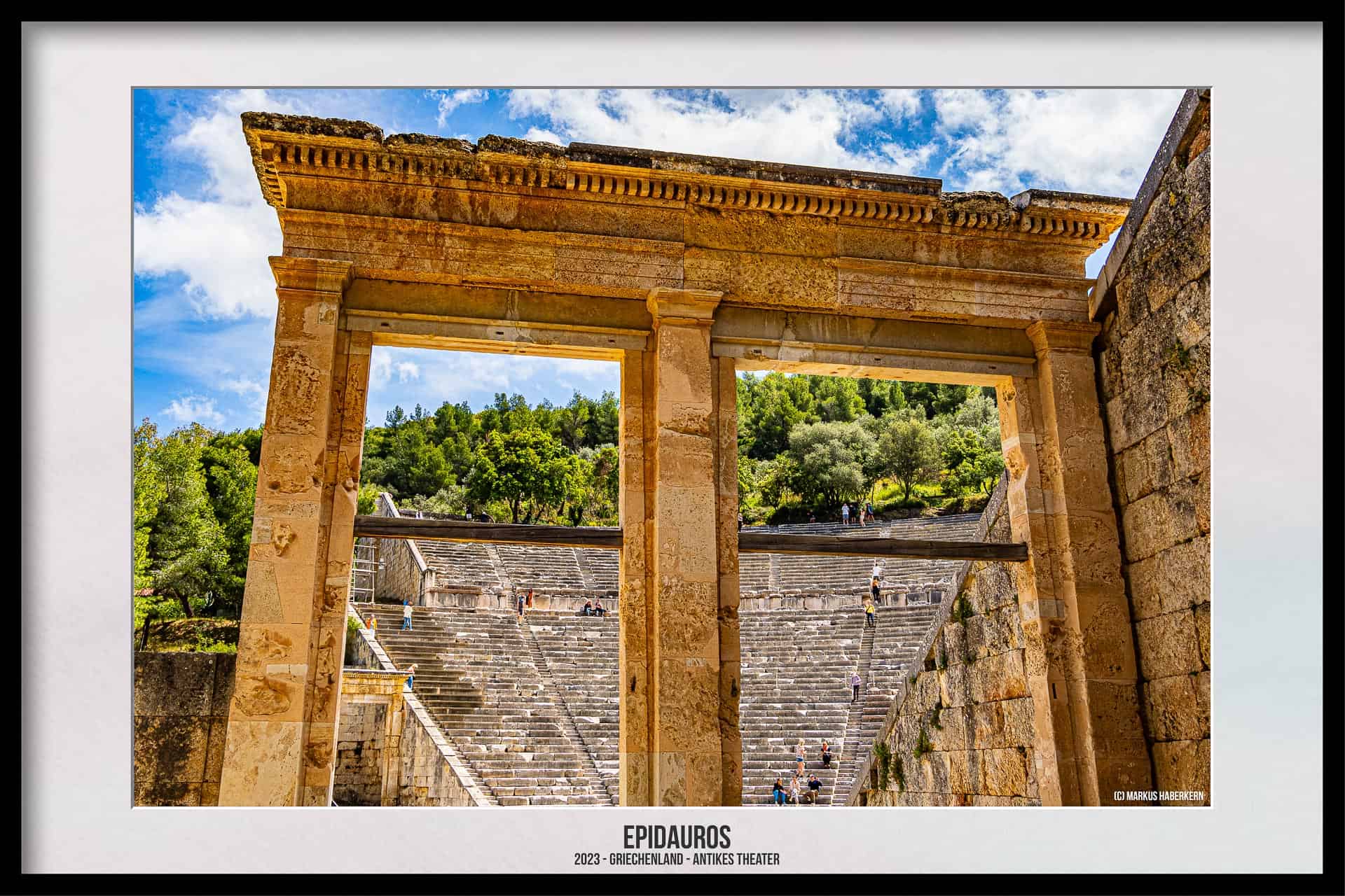 Was Epidauros von anderen Ausgrabungsstätten hervorhebt, ist aber das antike Theater. Es entstand etwa im 4. Jahrhundert v. Chr. und war anfangs für etwa 6.000 Zuschauer ausgelegt. Im 2. Jahrhundert v. Chr. wurde es deutlich erweitert und bot fortan bis zu 14.000 Besuchern Platz. Die Eingänge, Bühne und die Sitzreihen sind hervorragend erhalten und frei begehbar. Von den ursprünglichen Bühnengebäuden sind allerdings nur noch klägliche Reste zu sehen. Die Akustik des Theaters gilt als unübertroffen. Tatsächlich kann man es auf den oberen Rängen hören, wenn die berühmte Münze fallen gelassen wird, wenn Besucher in die Hände klatschen oder sich unterhalten.