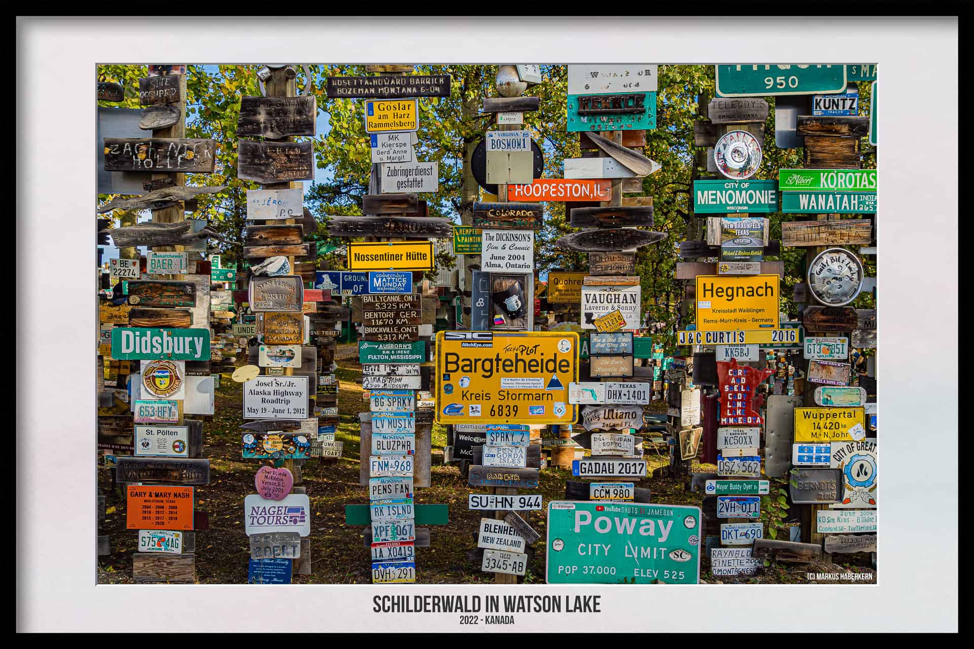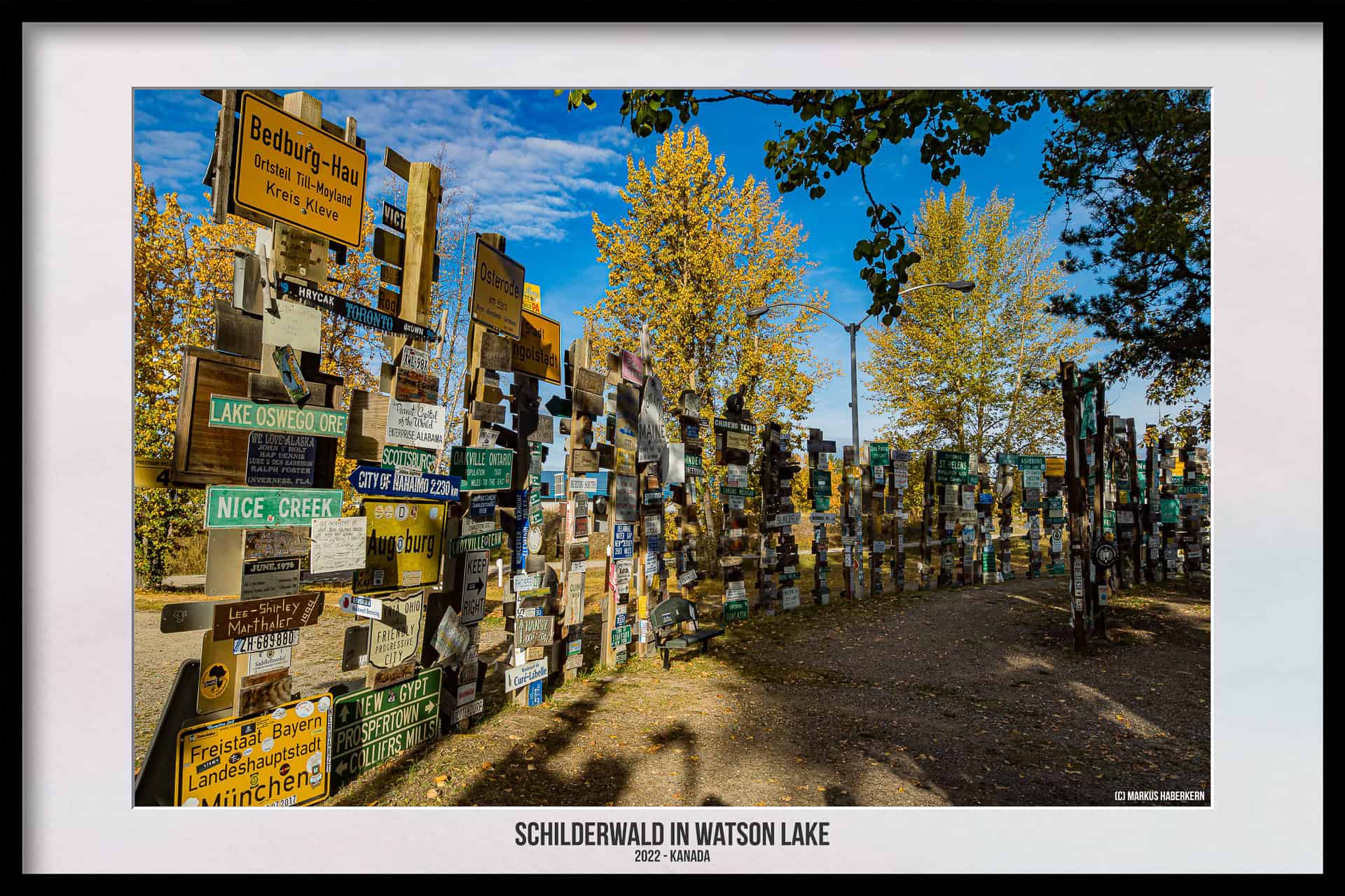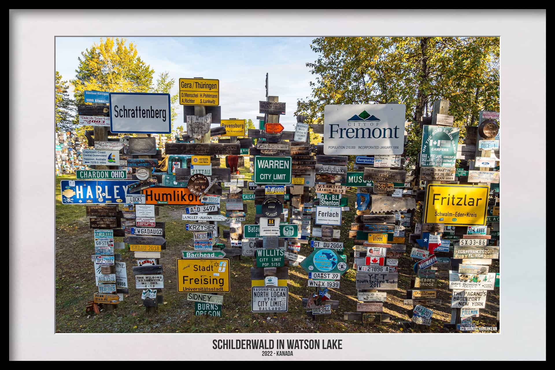 Wo München und Berlin in Kanada liegen und der Bus zu den Stadtwerken Klagenfurt hält. Watson Lake, eine eigentlich verschlafene Kleinstadt mit gerade einmal 800 Einwohnern am südlichen Ende des Yukon Territories, wird für viele Kanada Touristen oft für kurze Zeit eine Touristenattraktion. Das liegt weniger an dem Ort selbst, der eigentlich bis auf wenige Einkaufsmöglichkeiten nichts Besonderes bietet, sondern an dem sogenannten Sign Post Forrest, also dem Schilderwald oder auch Wegweiserwald.