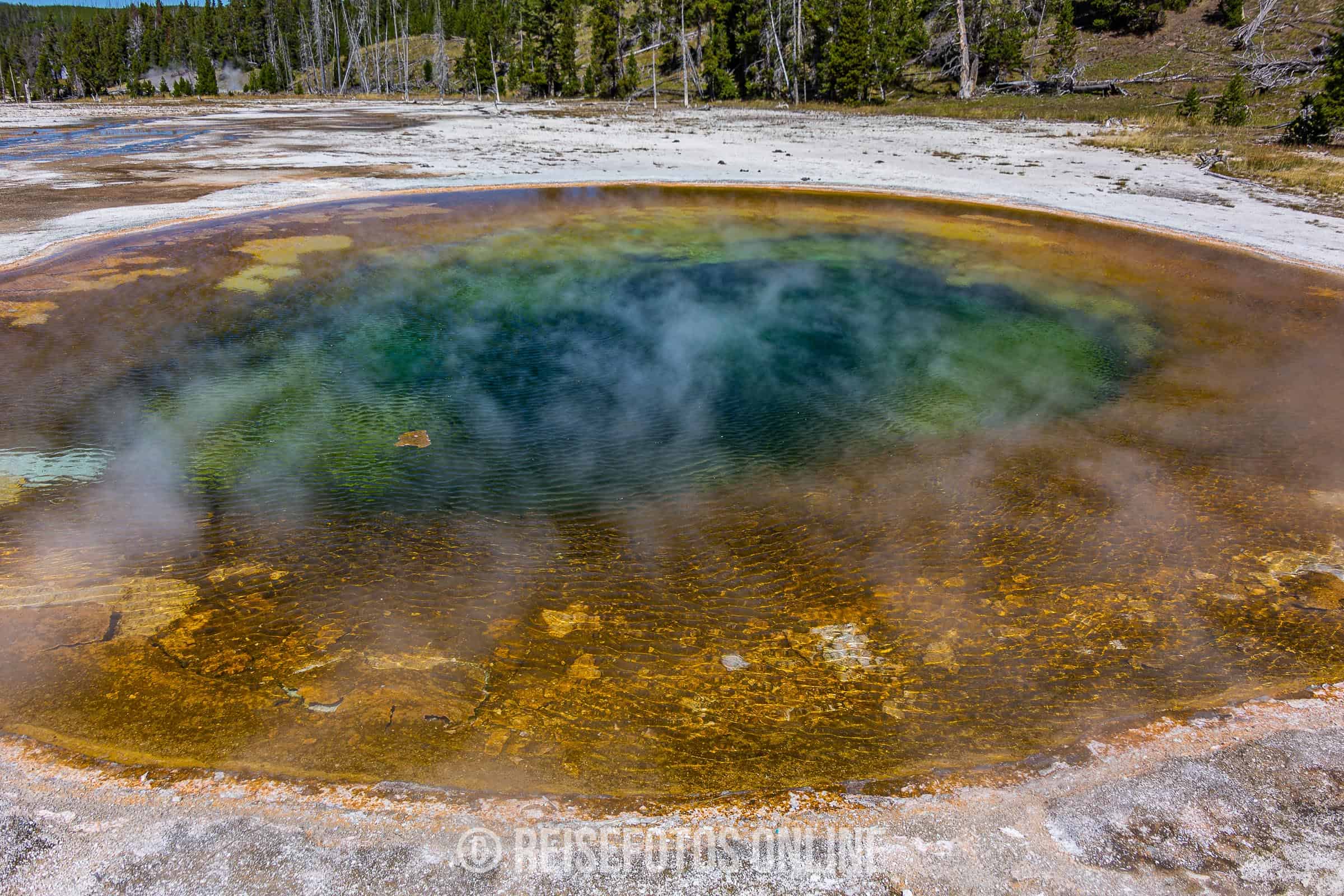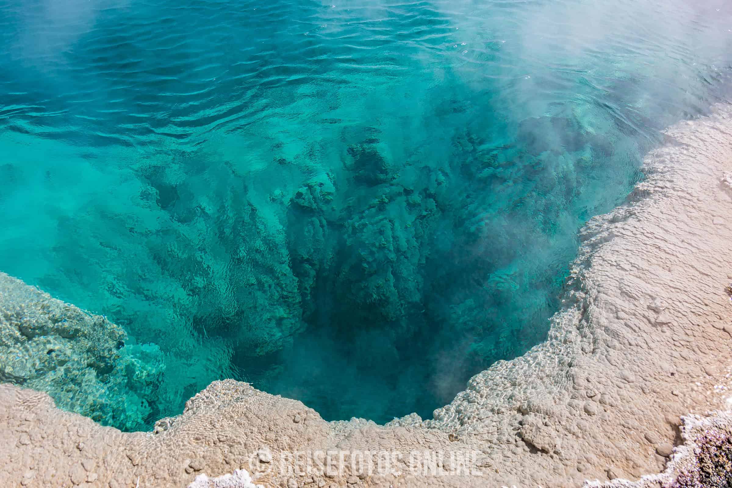- Old Faithful (der alte Getreue) und die zugehörige Area. Diesen Teil sollte man auf gar keinen Fall auslassen. Der Old Faithfull ist wahrscheinlich einer der bekanntesten Geysire überhaupt. Er trägt seinen Namen, da er recht genau etwa alle 90 Minuten ausbricht. Ein echtes Schauspiel. Die weiteren Geysire in der Area sind teils nicht weniger spannend und man sollte genügend Zeit einplanen. Den bekannten Morning Gloria Pool findet man ebenfalls hier.