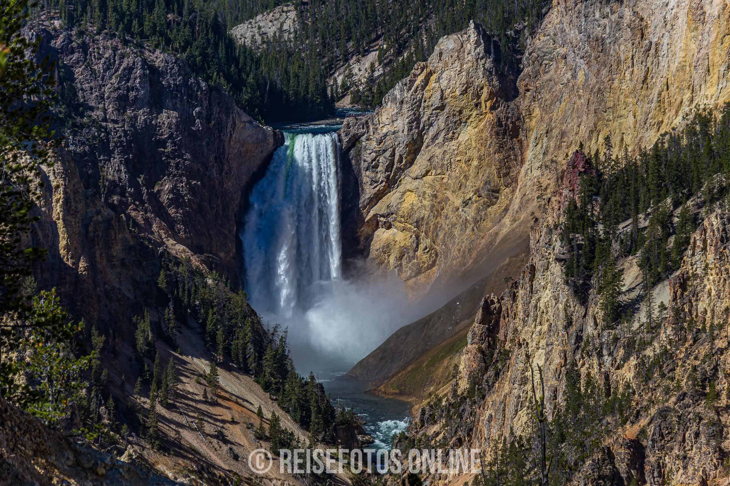 - Grand Canyon of the Yellowstone River ist eine etwa 32 Kilometer lange Schlucht durch welche der Yellowstone River fließt. Es gibt im ganzen drei Wasserfälle, wovon der Lower Falls mit 94 Metern der höchste ist. Es gibt einige schöne Aussichtspunkte, aber meiner Meinung nach sollte man den Artist Point auf jeden Fall besuchen. Einfach eine wundervolle Aussicht.
